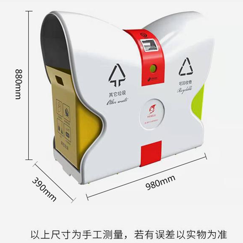 4.側(cè)板文字標(biāo)識(shí)采用絲網(wǎng)印刷,印刷有“可回收物” “其他垃圾”,分類(lèi)標(biāo)識(shí)參照《城市生活垃圾分類(lèi)標(biāo)識(shí)》規(guī)定的名稱(chēng)、圖形、符號(hào)和顏色要求,LOGO可定制。