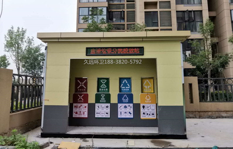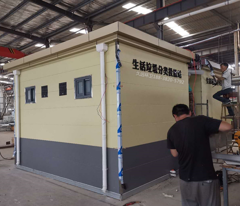 生活垃圾分類投放站廠家定制——久遠環(huán)衛(wèi)是一家集研發(fā)生產(chǎn)、銷售服務為一體的大型環(huán)衛(wèi)設備生產(chǎn)企業(yè),公司注冊資金5000萬元,占地面積50余畝,擁有現(xiàn)代化生產(chǎn)車間1萬余平方米,辦公面積1000余平方米,在職員工200多人,具有雄厚的技術及生產(chǎn)實力。 公司主要生產(chǎn)垃圾壓縮中轉站、垃圾分類收集房、環(huán)保移動公廁、各類垃圾桶果皮箱、環(huán)衛(wèi)工具箱、環(huán)衛(wèi)道班房、崗亭、休閑座椅、等公共環(huán)衛(wèi)設施。